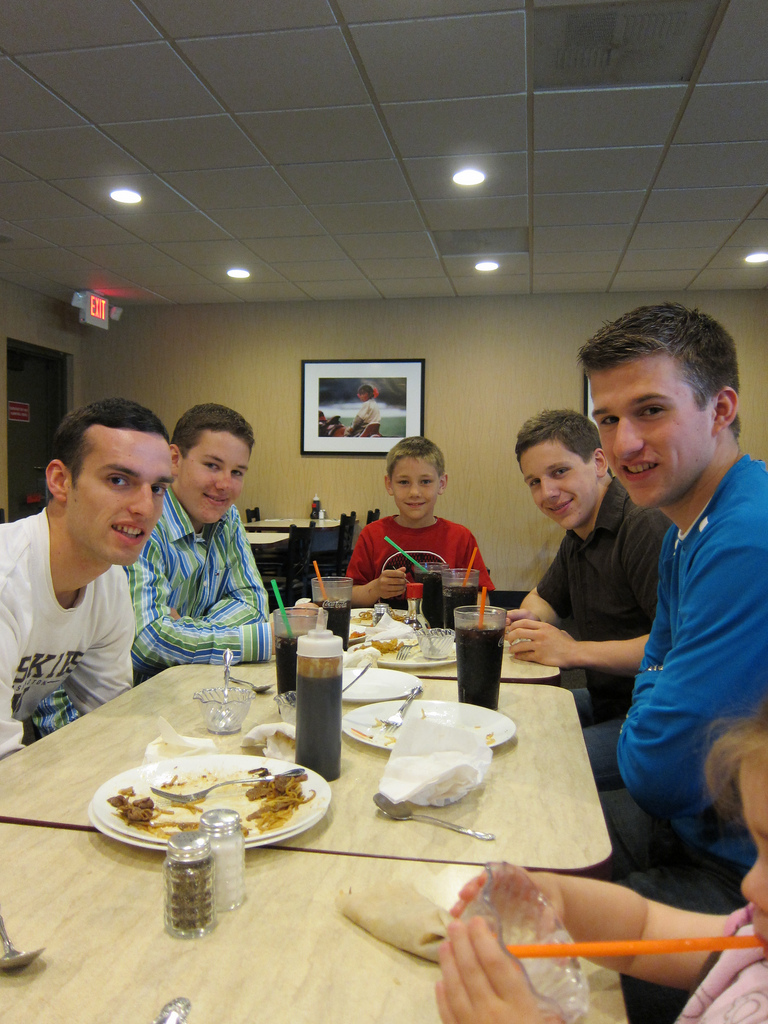Jared and Jonathan went back home on Thursday. It was hard to see them go- we really enjoyed having them here! The kids had a blast with them. After they left, Talon and Kaitlyn kept asking where they were, and if they were going to come over. Kaitlyn had a big crush on Jonathan. (She called him "Jonakin". It was really cute!) She would hardly talk to him or let him hold her, but as soon as he wasn't around, she'd be asking about him. After I did her hair in the morning, she would ask me if 'Jonakin' was going to like her hair and her dress. She refused to take a picture with him, but did give him a good-bye hug, and still talks about him periodically.